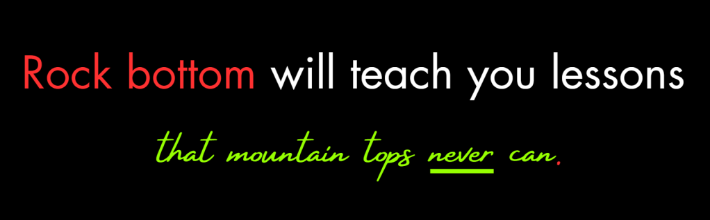 Rock bottom will teach you lessons that mountain tops never can.